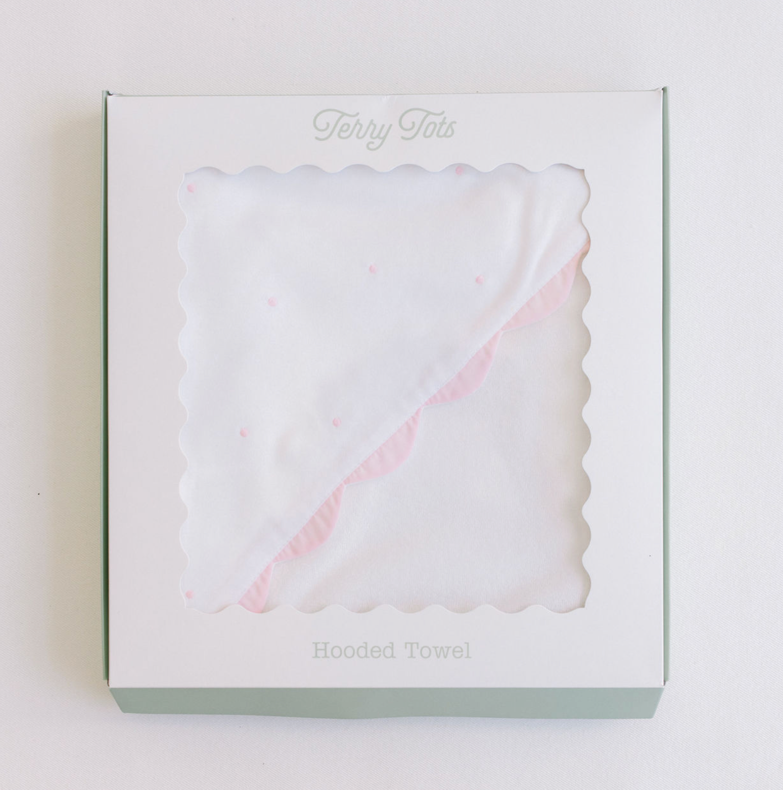 Double layer – white Egyptian cotton with pink hand embroidered dots on one side and thin terry on the other side