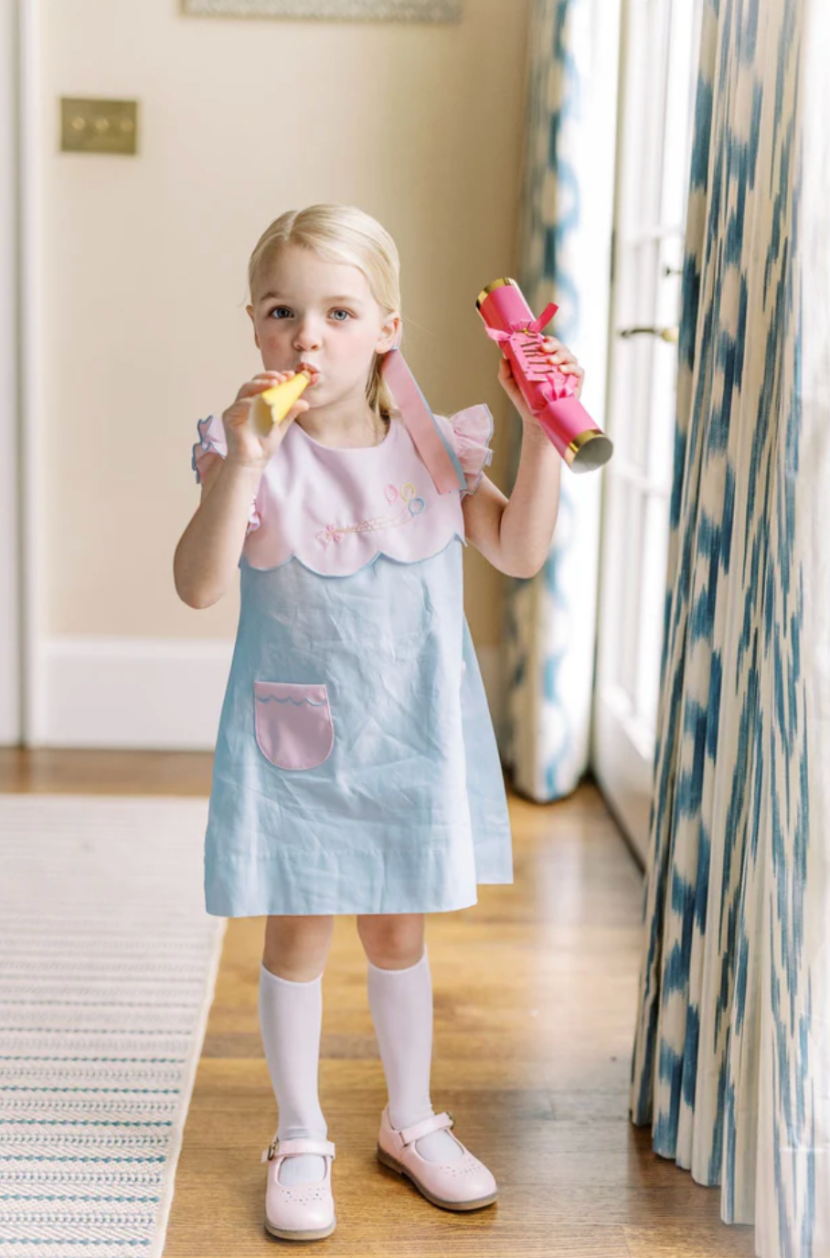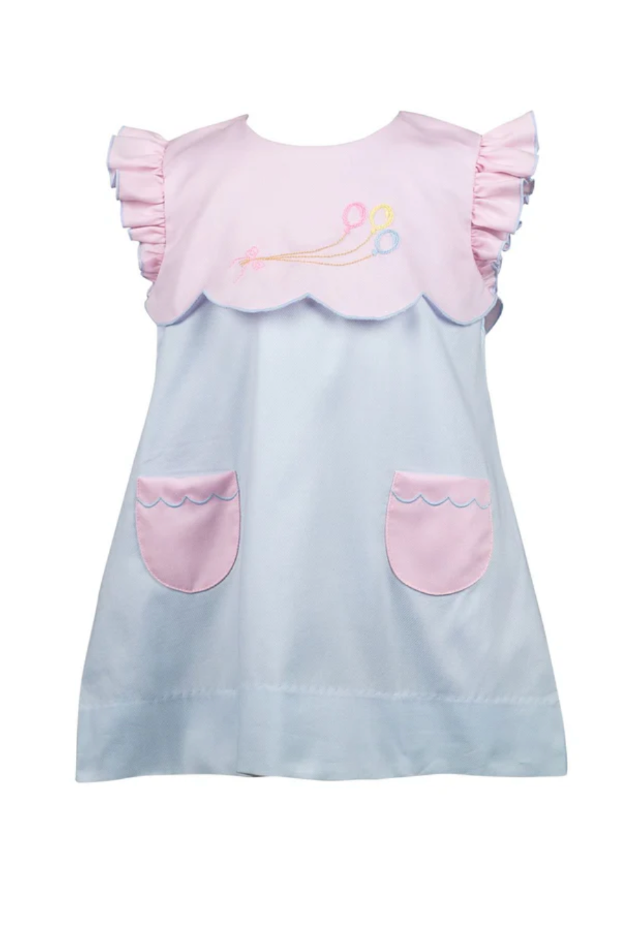 The pink and blue combination is stunning and each scallop is hand-cut by our seamstress. The look is delicate and lovely. The perfect style for any birthday occasion or any other happy day.
