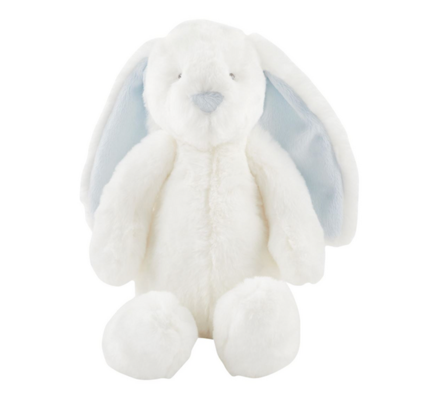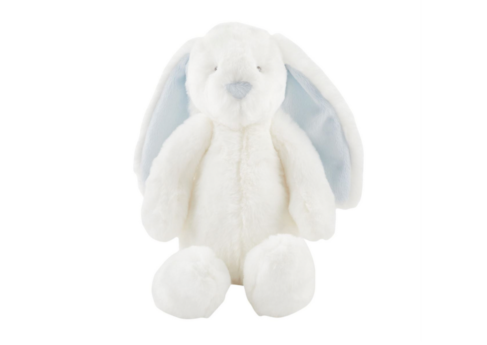 Your little one will adore this large plush pink or blue bunny. The faux fur plush bunny features contrast flat minky nose and trim detail. The bunny has pink ears and nose. The bunny is super soft and made from polyester. The bunny would be great for a first Easter gift and also comes in a larger version.