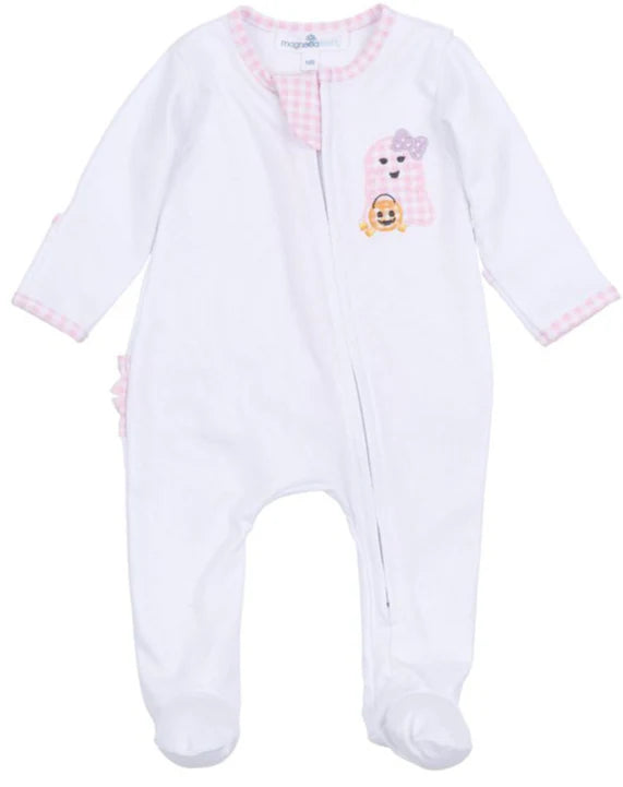Magnolia Baby: Boo Crew! Applique Zipper Footie with Ruffle - Pink