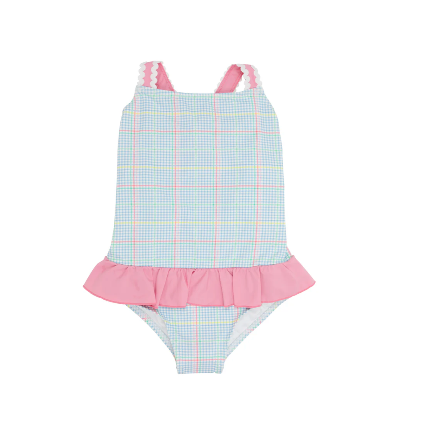 TBBC: Taylor Bay Bathing Suit Piccadilly Plaid With Hamptons Hot Pink