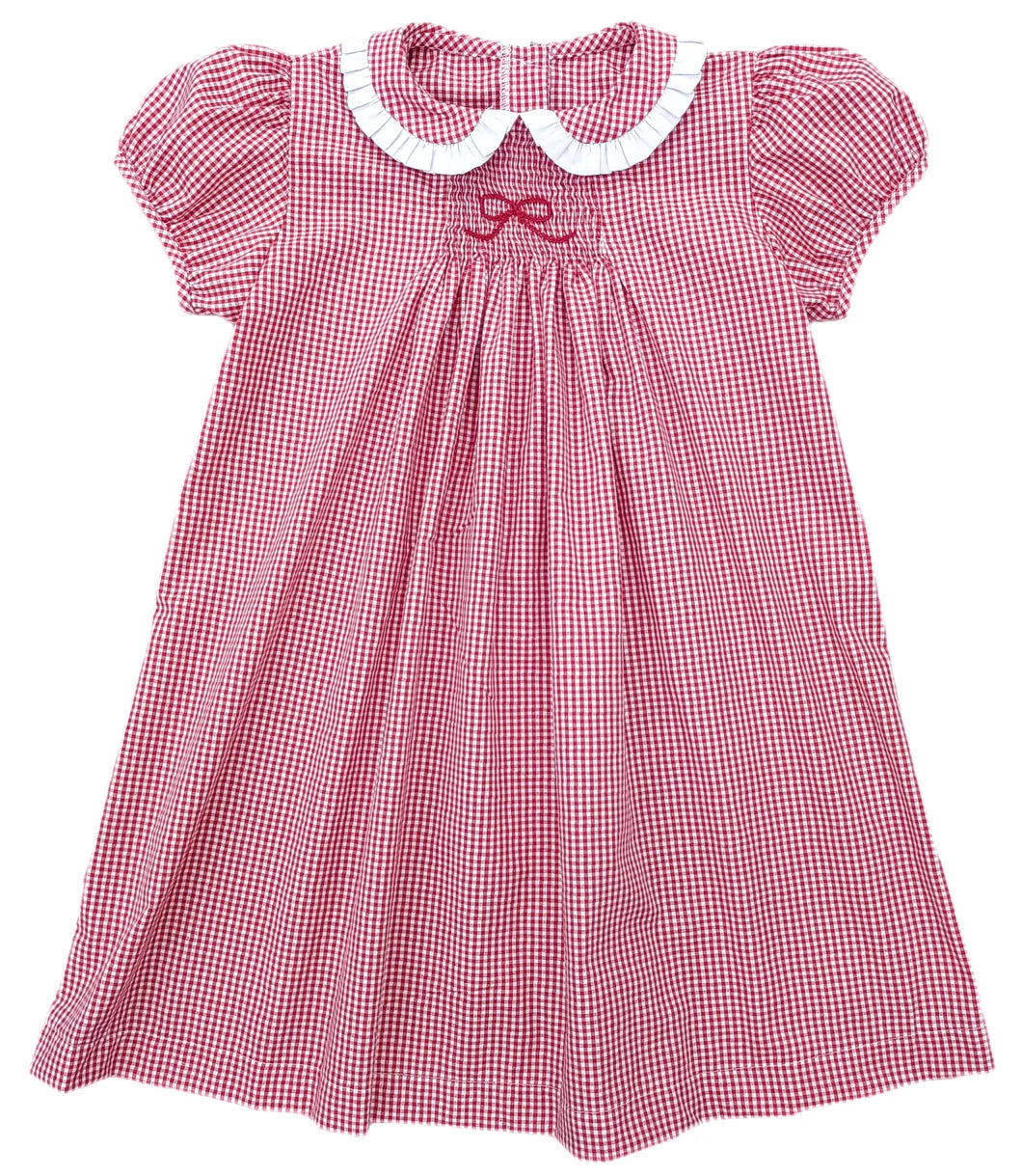 James & Lottie: Sage Smocked Red Bow Dress