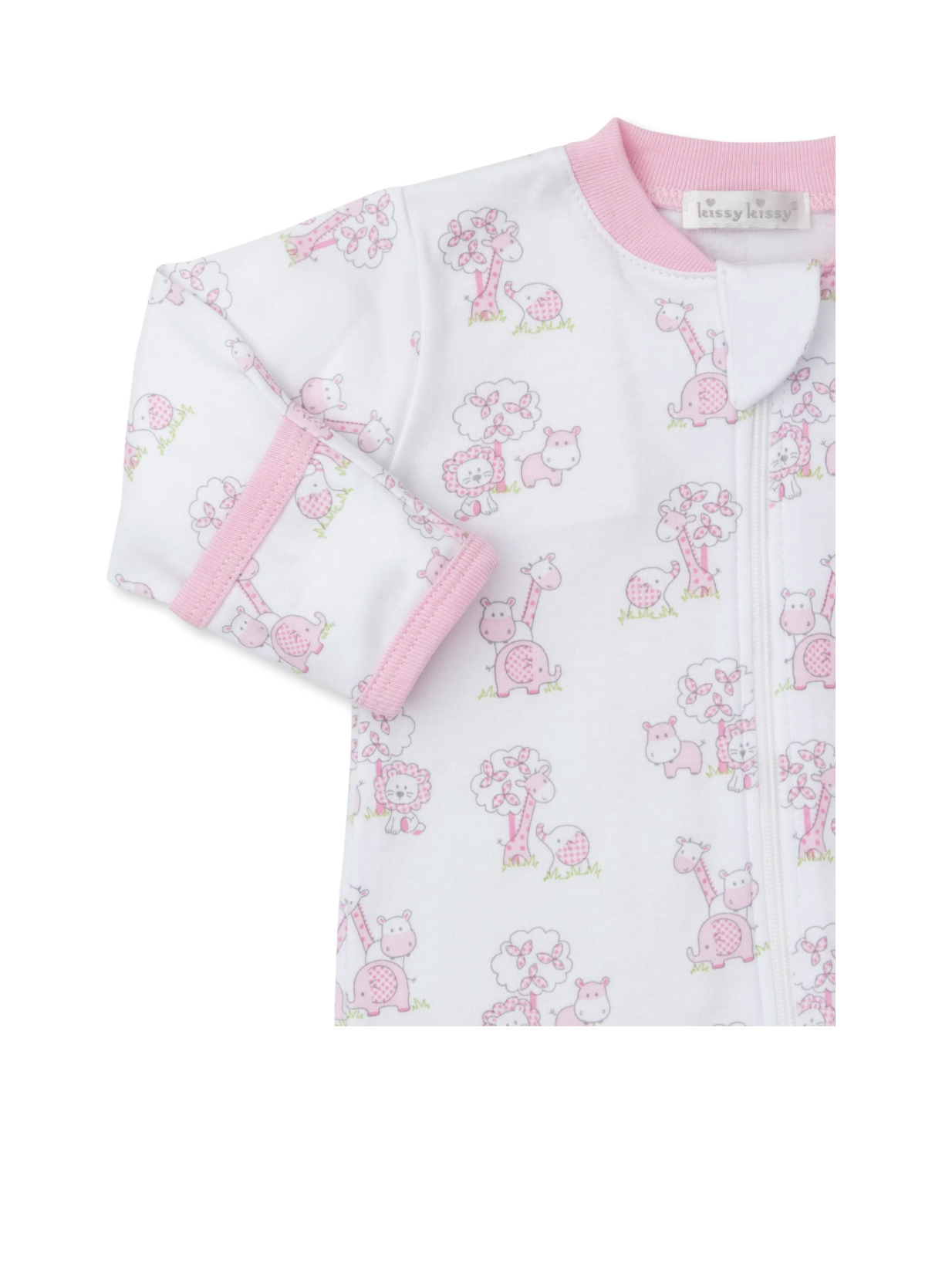Kissy Kissy: Gingham Jungle Pink Zip Footie