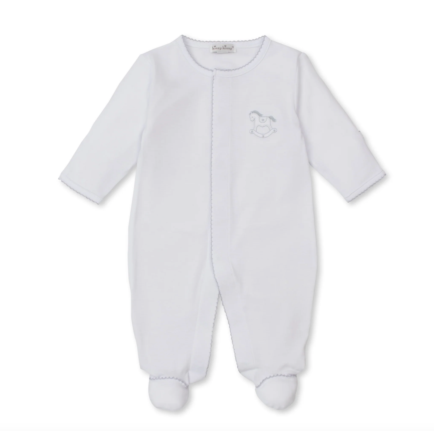 Kissy Kissy: Rocking Horse Footie- White/Silver