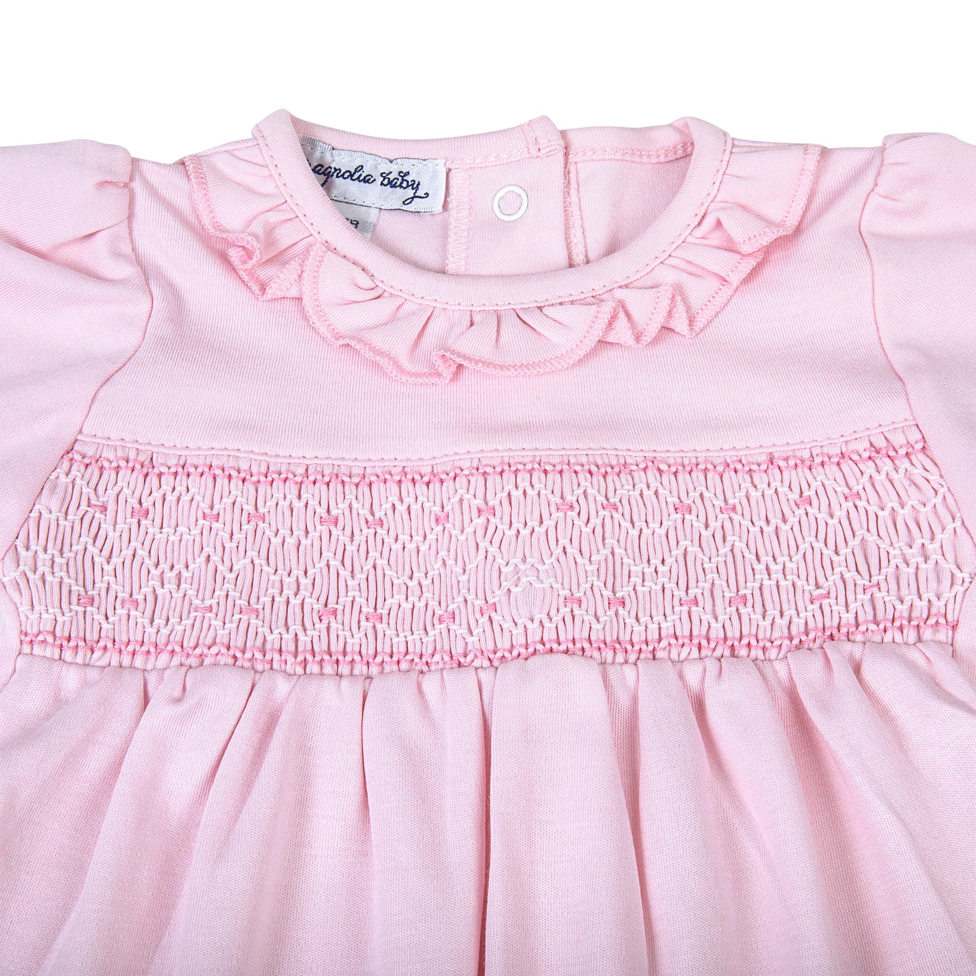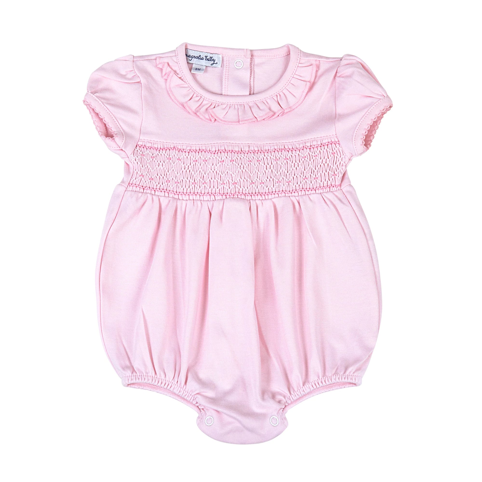 Magnolia Baby: Solid Pink Smocked Girl Bubble