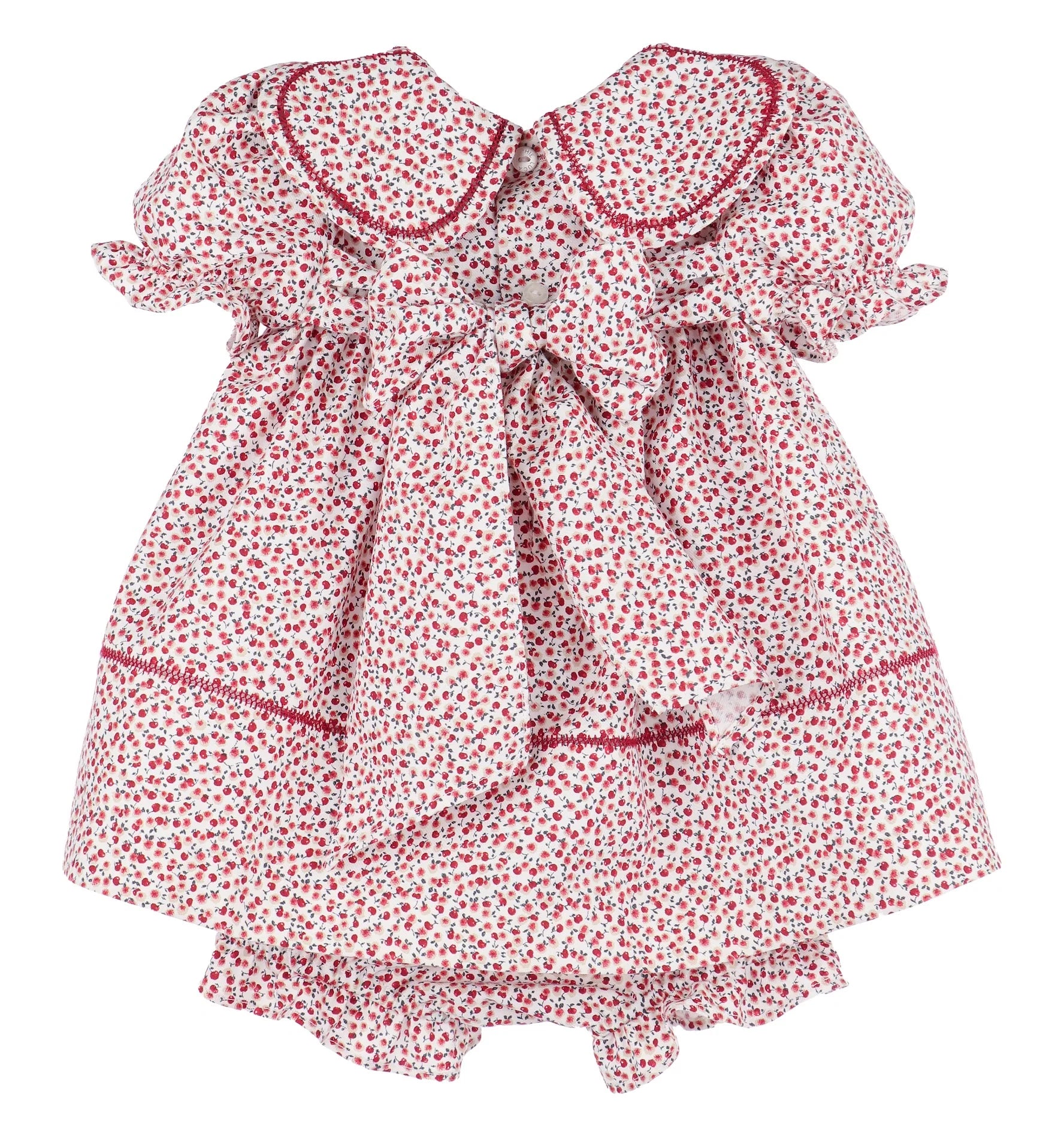This sweet float dress in an apple orchard print, features a scalloped embroidered collar, ruffle sleeves, and contrasting check bloomers. Perfect for a special occasions or everyday, this dress will make your little one look like a true princess.