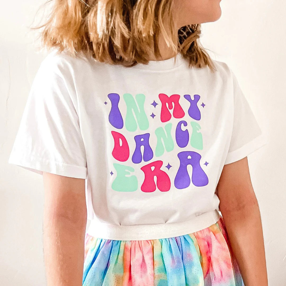 The In My Dance Era Short Sleeve T-Shirt is a cute and trendy t-shirt for girls who love to dance!