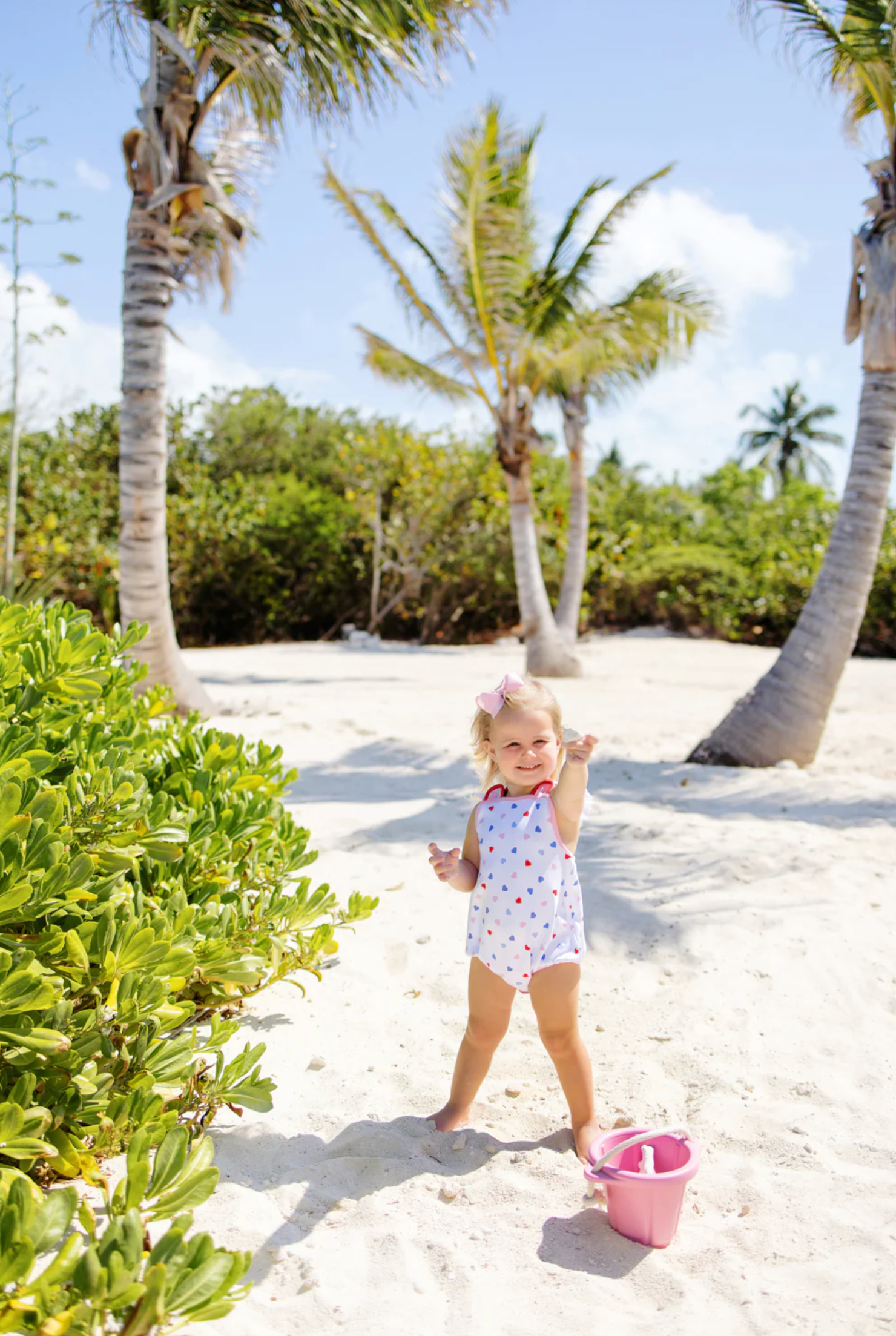 The Saylor Sunsuit in Happy Hearts is absolutely adorable for so many occasions, especially Valentines Day! Featuring Pier Party Pink and the eyelet detailing cross back, your little love will look as sweet as ever!
