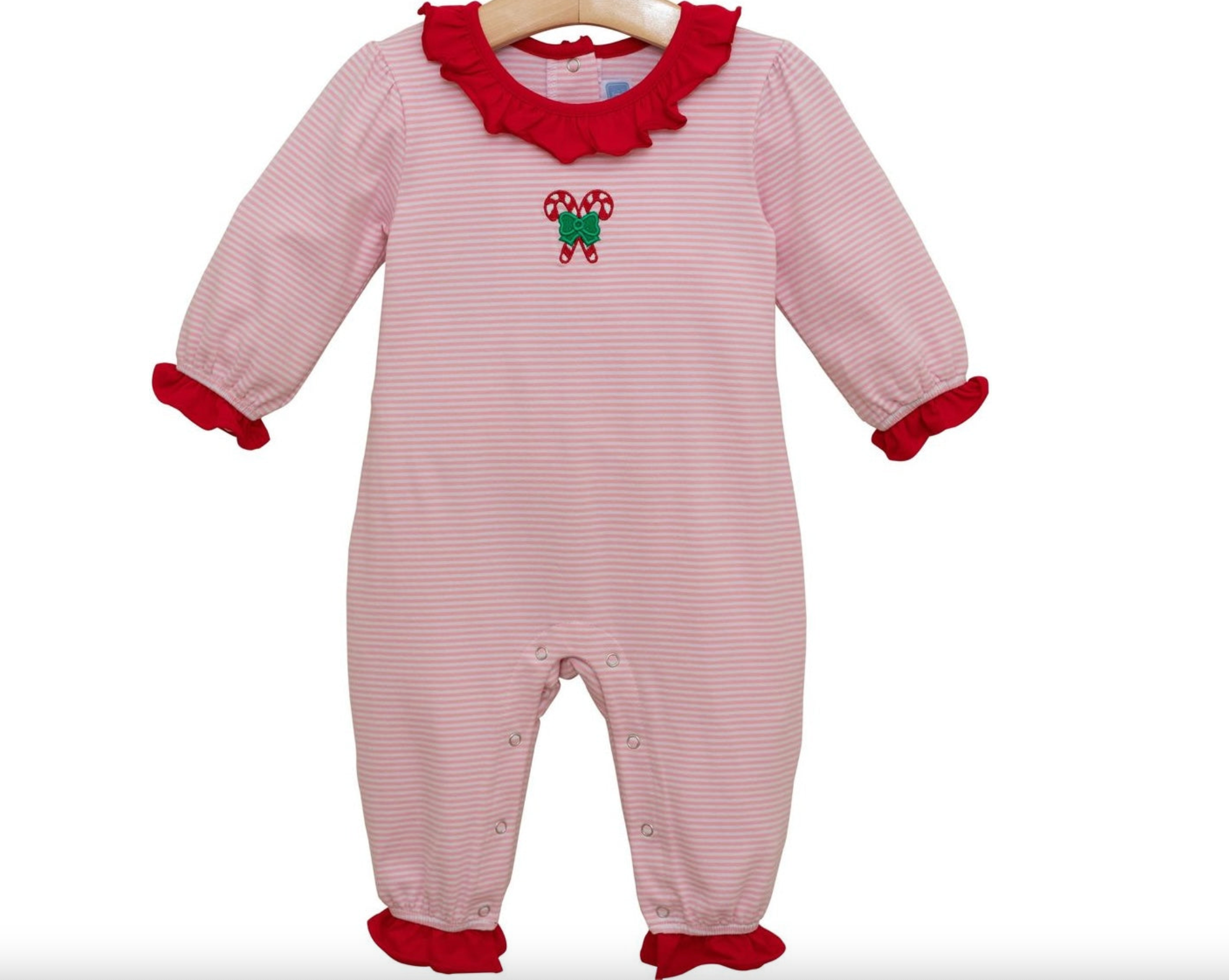 Trotter Street: Candy Cane Embroidery Ruffle Romper
