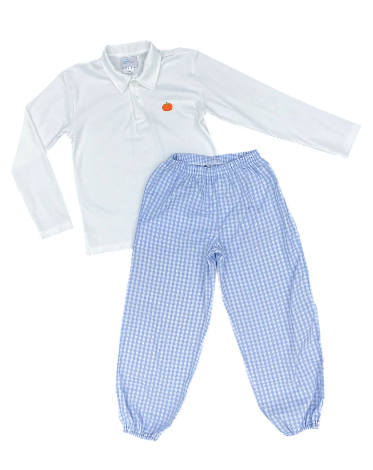 James & Lottie: Conrad Pant Set w Pumpkin Polo