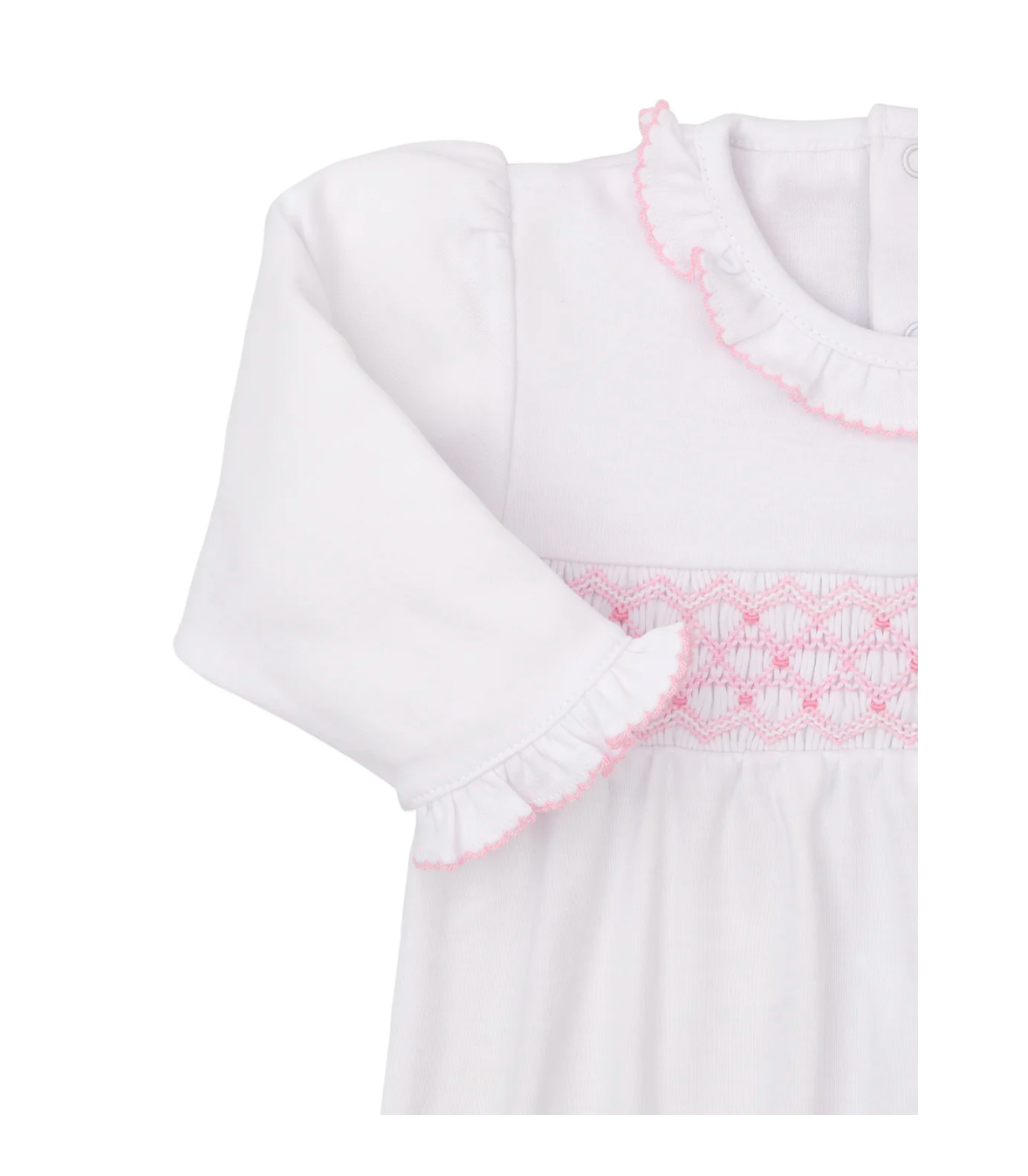 Kissy Kissy: White/Pink Hand Smocked Sack