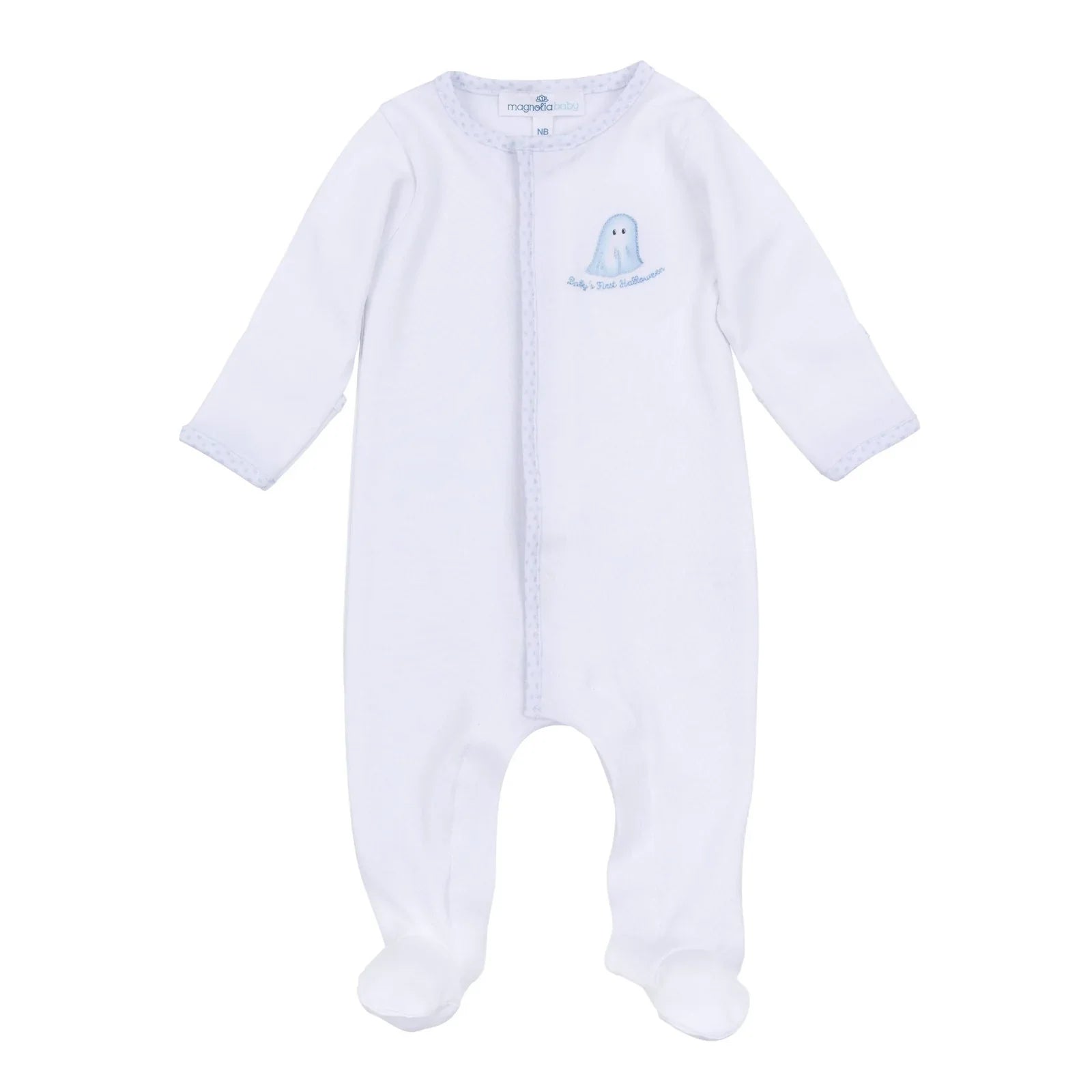 Magnolia Baby: Boo Crew! Applique Zipper Footie - Light Blue