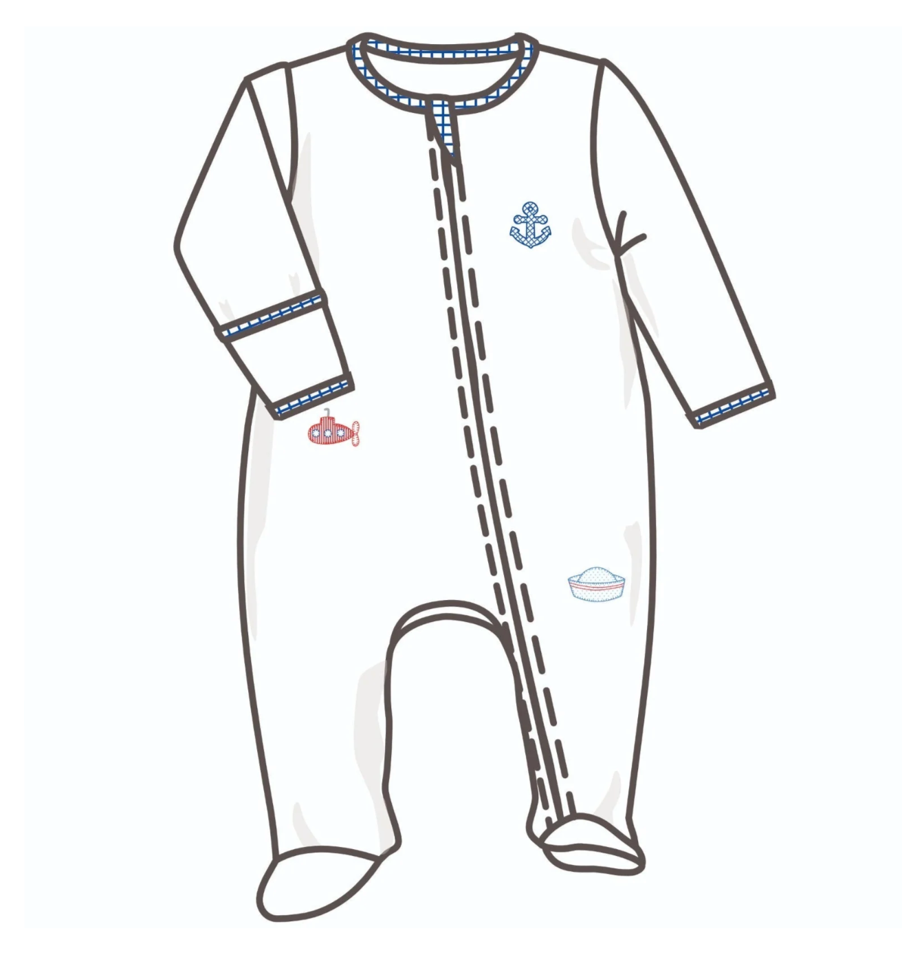 Magnolia Baby: Little Skipper Applique Zip Footie