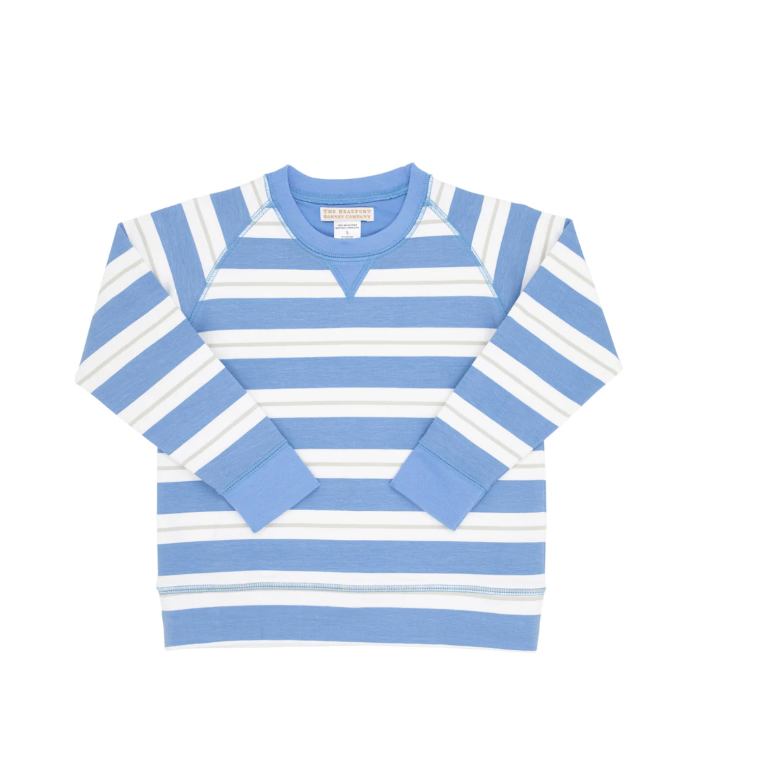 Our Cassidy Comfy Crewneck featuring Barbados Blue, Worth Avenue White, & Sandy Springs Stone Stripe is perfect for everyday wear. Your little ones will love how soft & warm this crewneck is, and you'll love how practical it looks!