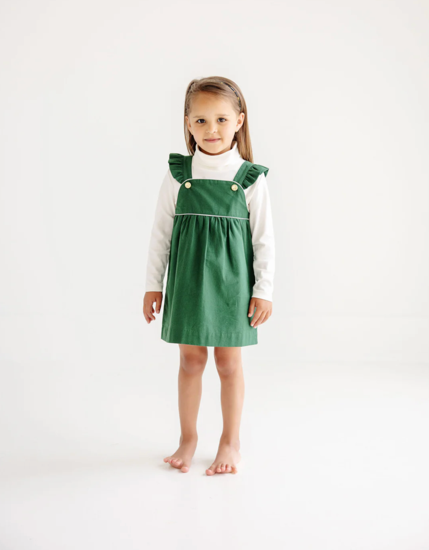 Our Julia Jumper featuring Grier Green with Palmetto Pearl is perfect for all of the fall and winter festivities! Layered with a Tatum's Turtleneck, this outfit will be a staple for your little lady's wardrobe!