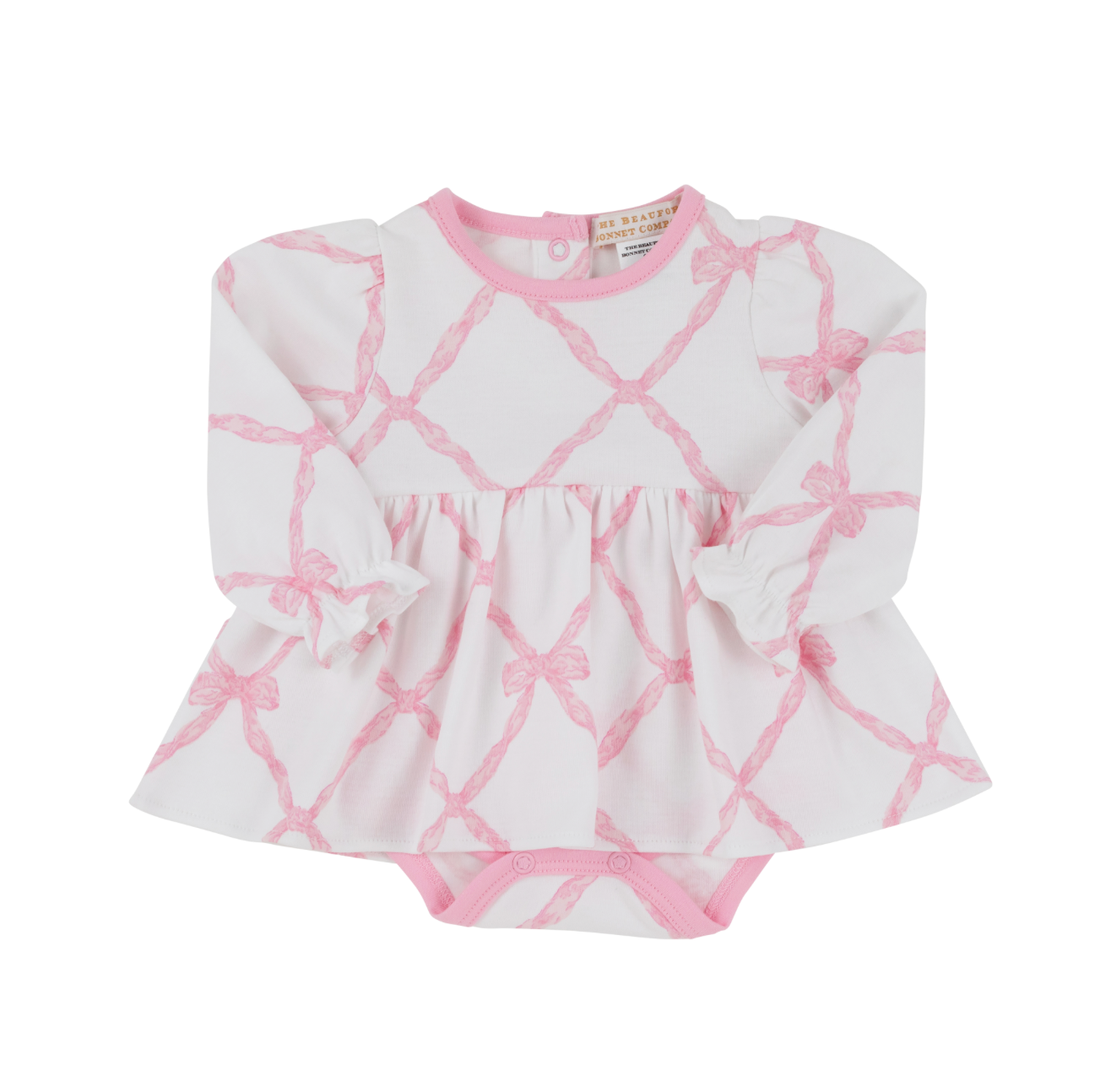 TBBC: Long sleeve Daisy Diaper Cover Dress - Belle Meade Bow/Pier Party Pink