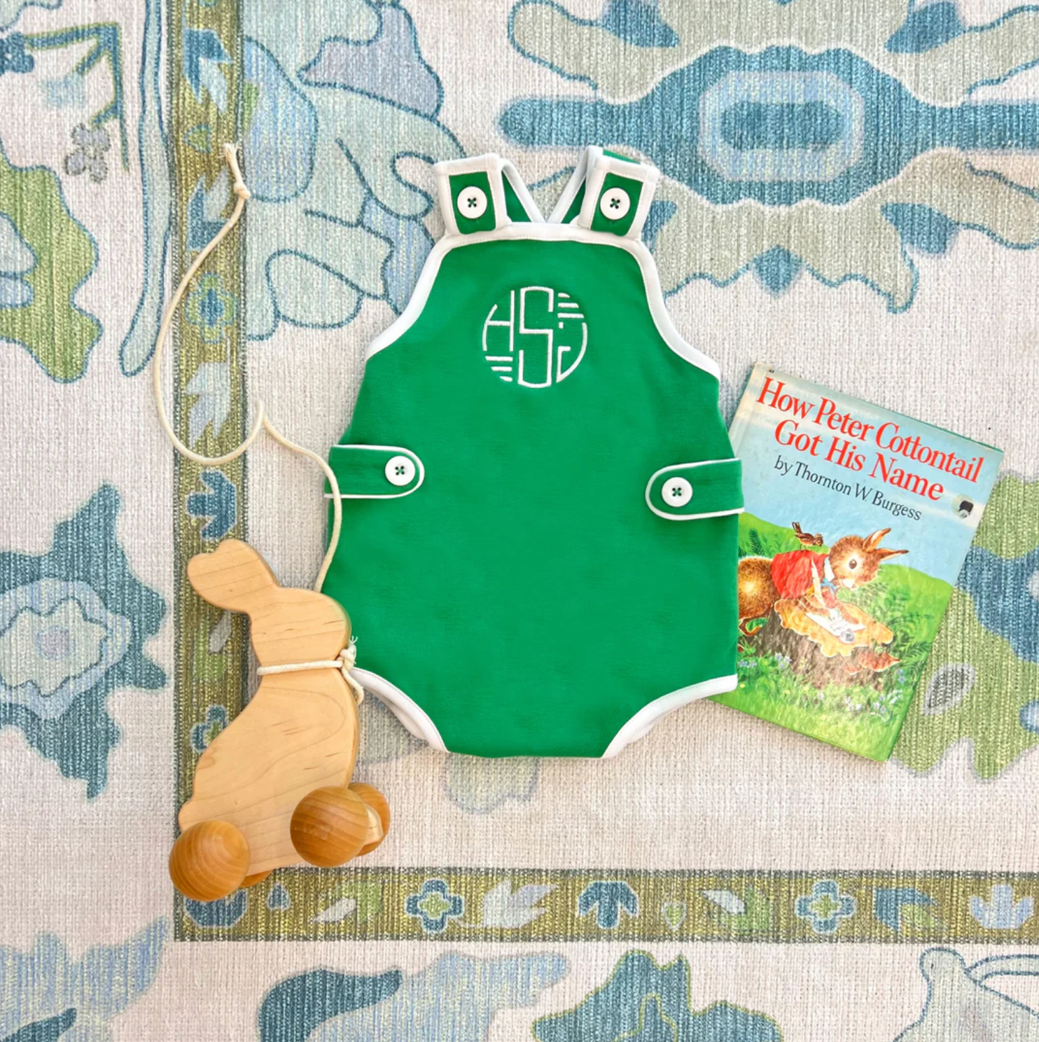 TBBC: Skipper Sunsuit - Kiawah Kelly Green With Worth Avenue White