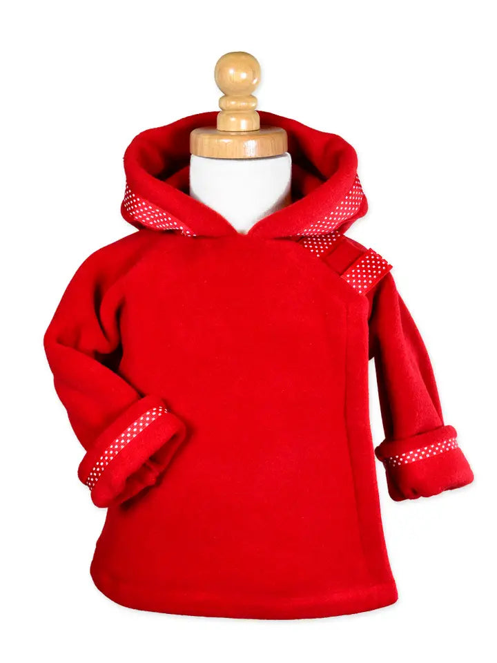 Widgeon’s classic Polartec fleece coat is possibly the best infant/toddler outerwear ever made. Flap-over-flap design has Velcro close for easy on/off and double layer protection for the child’s chest area. The ingenious design allows for frustration free dressing and undressing. Grosgrain ribbon at the top of the hood provides adjustability to ensure a snug fit around the head on windy days. Made from Polartec® Classic 300 with DWR from Malden Mills to insure the best weight-to-warmth ratio possible. The rolled up sleeves and generous sizing allows for some growth before you need a bigger size. 100% Polyester. Machine Washable.